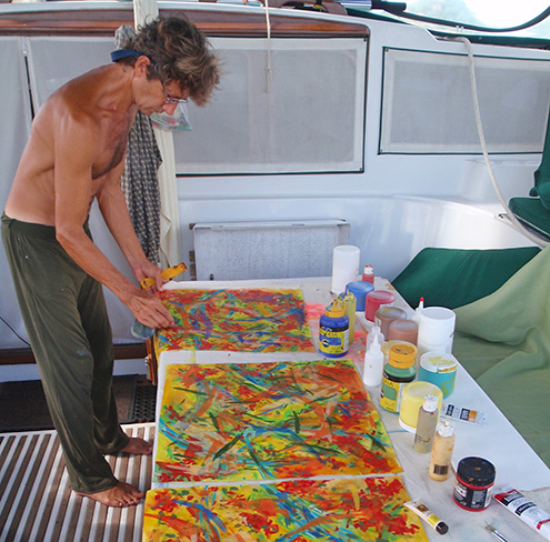 You get to focus on your creative growth and endeavors, meet new friends or bring your friends along. Each cabin has a double berth, which is shared. If single and you prefer not sharing with another artist, you may bring a friend or spouse. There are also 2 berths available in our covered cockpit.